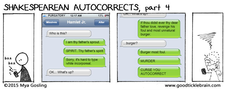 (Good Tickle Brain is a lovely website with marvelous comics of Shakespeare, Hamlet, and a whole bunch of other fun stuff. Highly recommend: https://goodticklebrain.com/shakespeare-index)