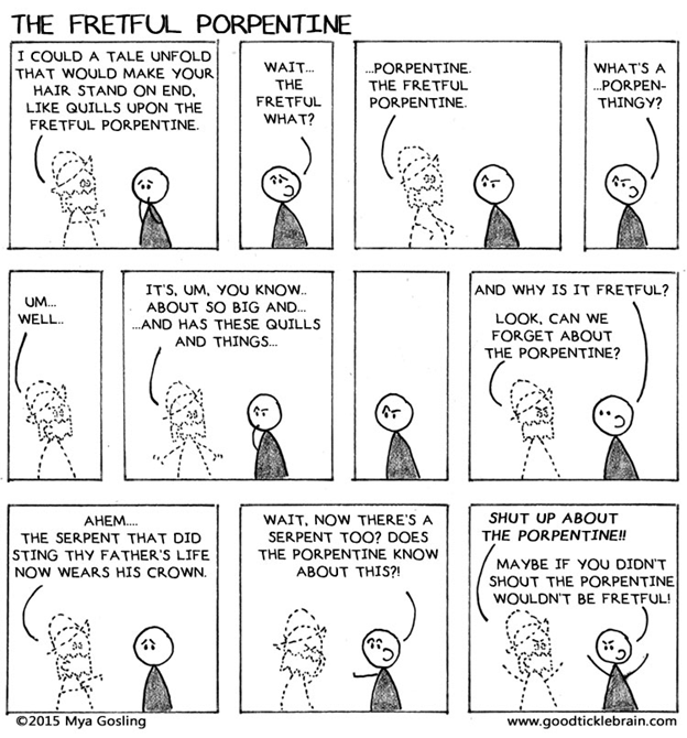 - Polonius (how do you feel about him now, after seeing he’s sent someone to spread lies about his son?)