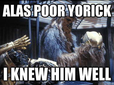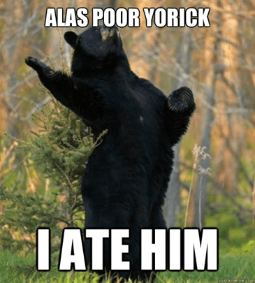 We’ll also look at the Yorick speech which is NOW when Hamlet holds the skull, and it’s really not that much of a speech. I think the skull just gets to people, so they remember that.